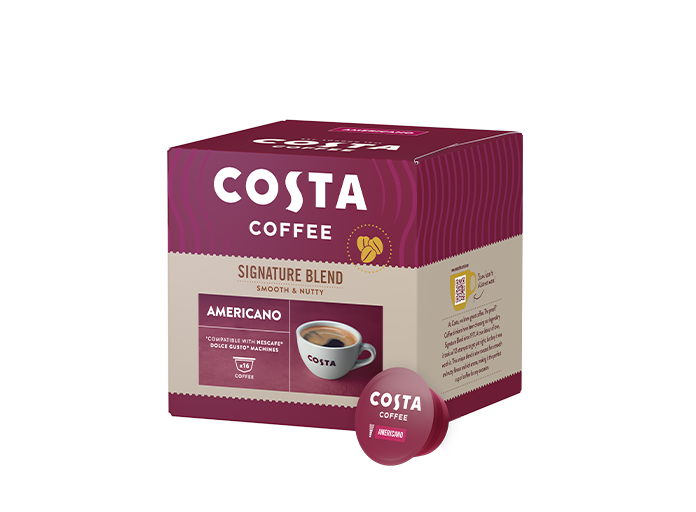 16 capsule premium Costa Coffee - Americano, compatibile cu aparatele Nescafe® Dolce Gusto®.